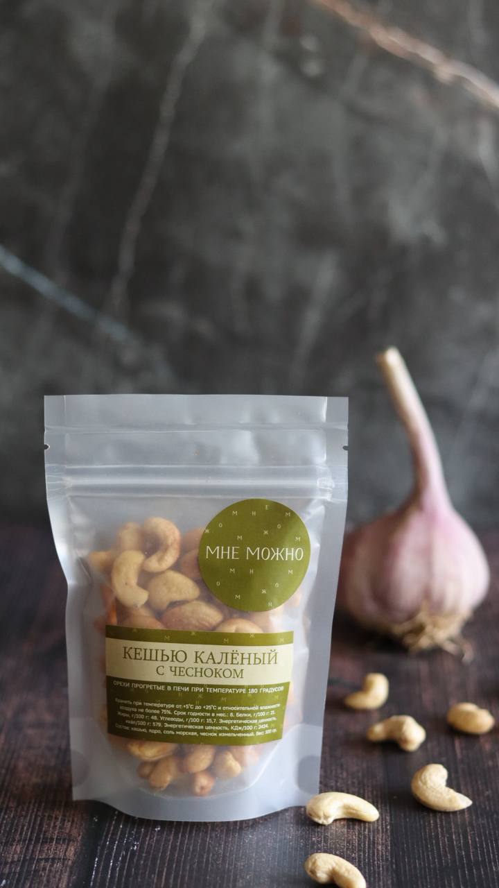 Состав: кешью ядро, соль морская, чеснок измельчённый.